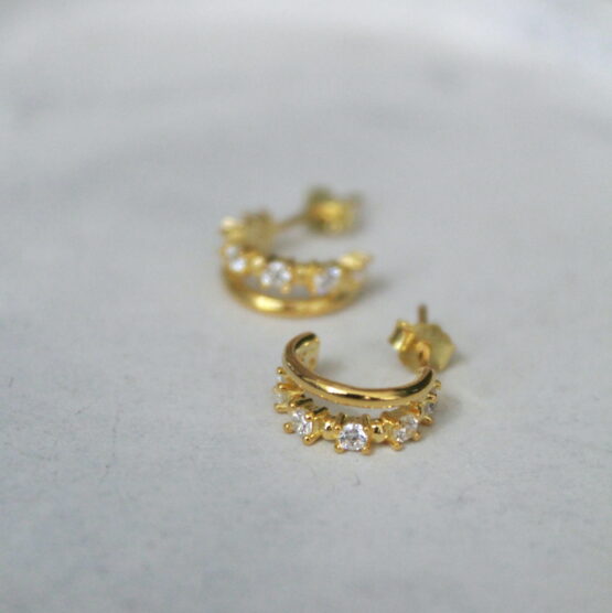 Aros dobles, en plata 925 con baño de oro 18k y circonias.