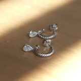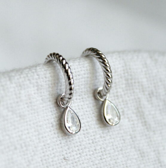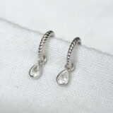 Aros torneados en plata 925 con circonia colgante en forma de gota.